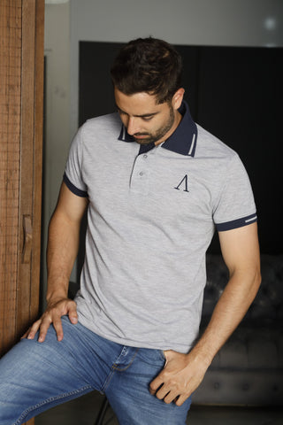POLO PREMIUM GRIS JASPE / AZUL OSCURO - PM008